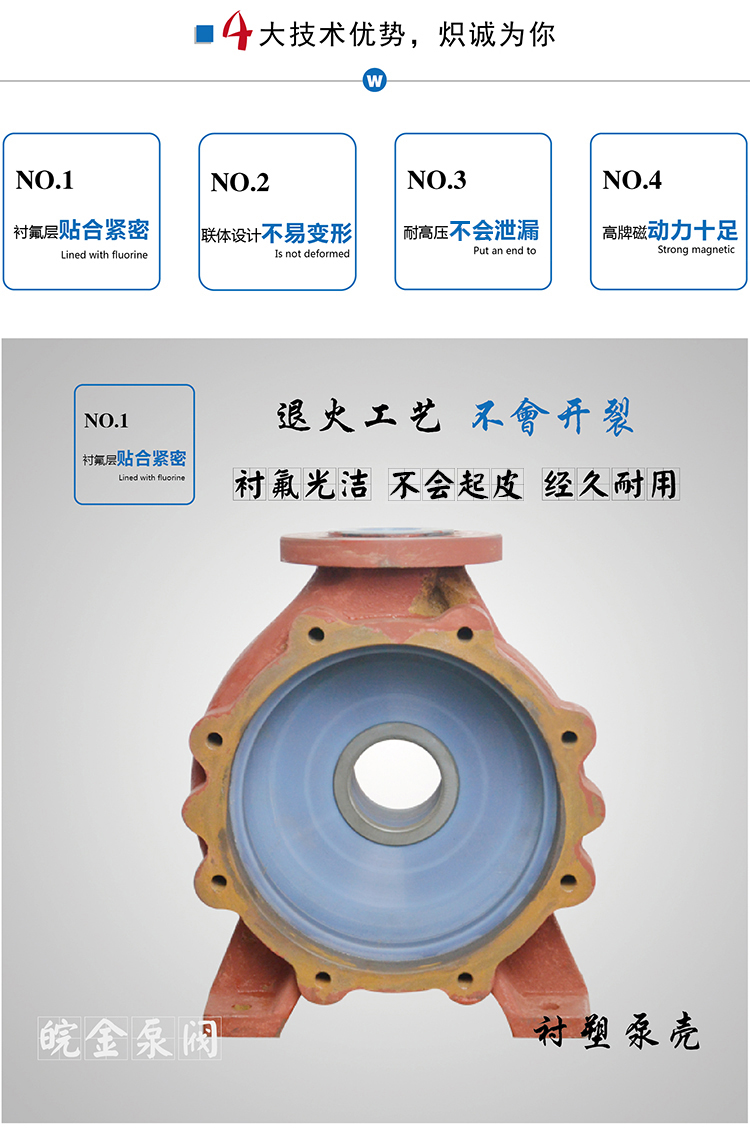 皖金泵閥氟塑料磁力泵主要參數: