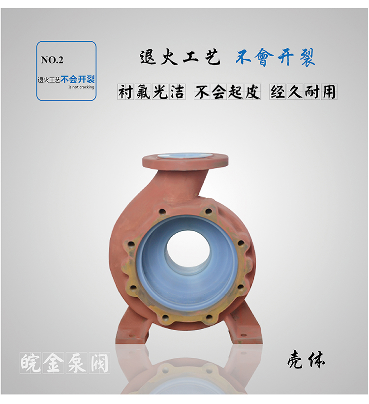 二、殼體采用高溫退火工藝,不會開裂,襯氟層光潔,經久耐用。