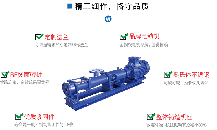 G型單螺桿泵是一種內嚙合的密閉式螺桿泵,屬轉子式容積泵,由于這種泵對介質的適應性強,流動平衡,吸入性能好,壓力脈動小,除可以輸送各種可流動的介質外,還可以輸送高粘稠介質、含
