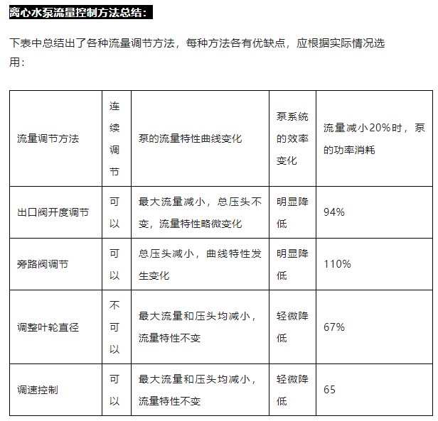 (1)出口閥開度調(diào)節(jié),能量消耗為94%,流量較低時(shí)消耗功率較大。
