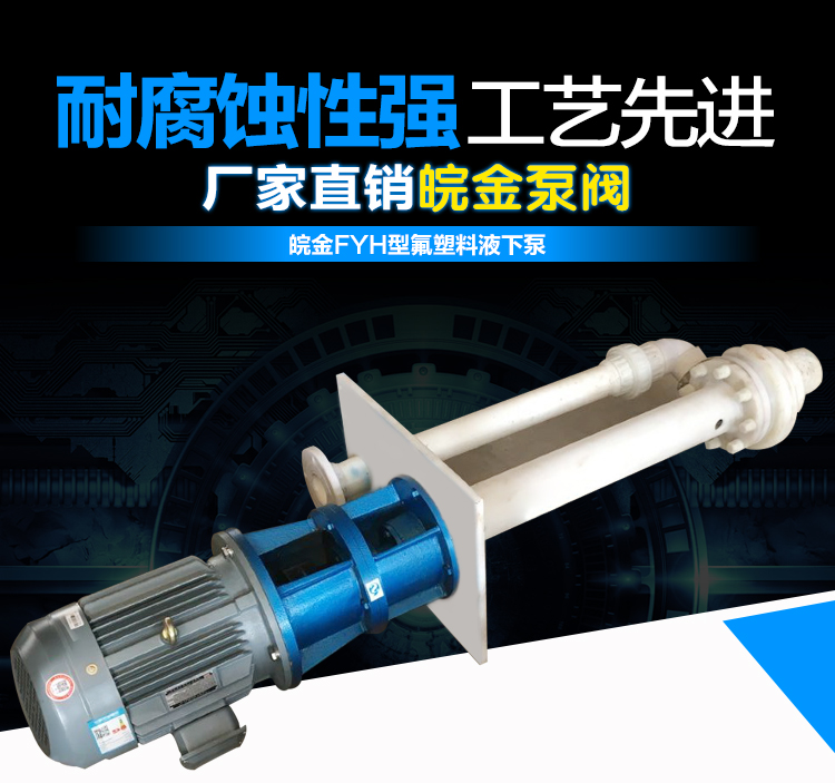 氟塑料液下泵屬于長軸立式離心泵,過流部件全部采用氟塑料或超高分子量聚乙烯襯里制造。無需灌液,即可抽送液體。FYH氟塑料液下泵是長軸離心泵,其接觸液體部分由氟塑料壓制一體成型,具有耐腐蝕范圍廣、效率高、重量輕、不需灌液即能抽送、維修方便等特點。